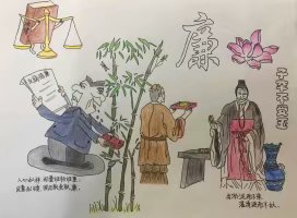 公司师生积极参加校园廉洁文化月作品展 发布时间: 2018-06-11| 浏览次数: 854 公司师生积极参加校园廉洁文化月活动,创作了多幅书画作品来展示“一身正气两袖清风,一尘不染克己奉公。”具体作品展示如下:图1——《莲》图2——《廉洁之风伴我行》图3——《廉》图4——《天下为公》图5——《臣心如水》图6——《爱莲说》图7——《生当作人杰,死亦为鬼雄》图8——《党在我心,廉洁自我行》。