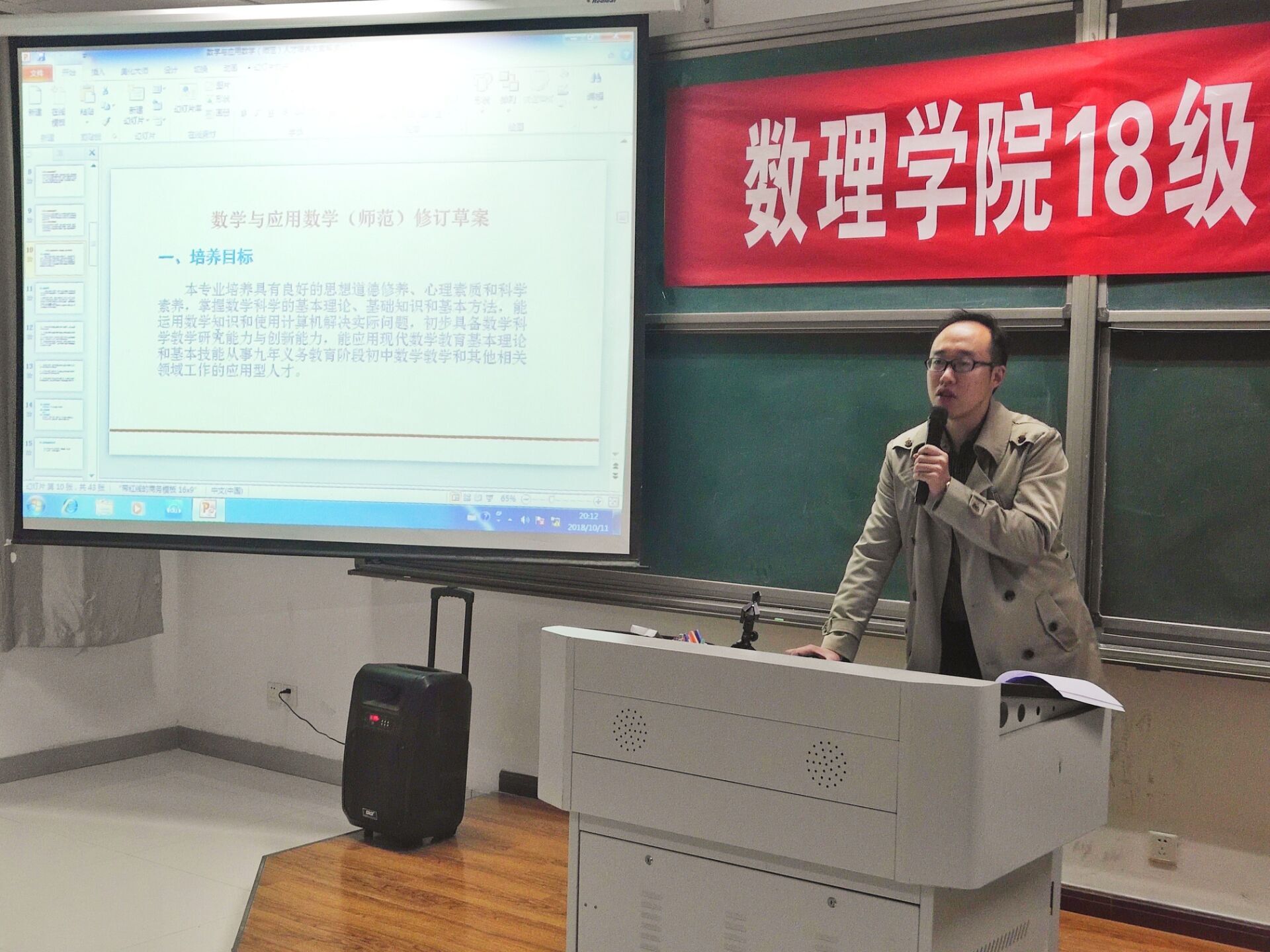 其次,由公司王琛玮、王宝平两位老师向新生详尽地讲解了数学与应用数学(师范)和应用统计学专业人才培养方案。其中涉及到培养目标、毕业要求、修业年限、主干学科、核心课程、学位课程等。这些具体解读使公司同学更加全面地了解了自己所学的专业。