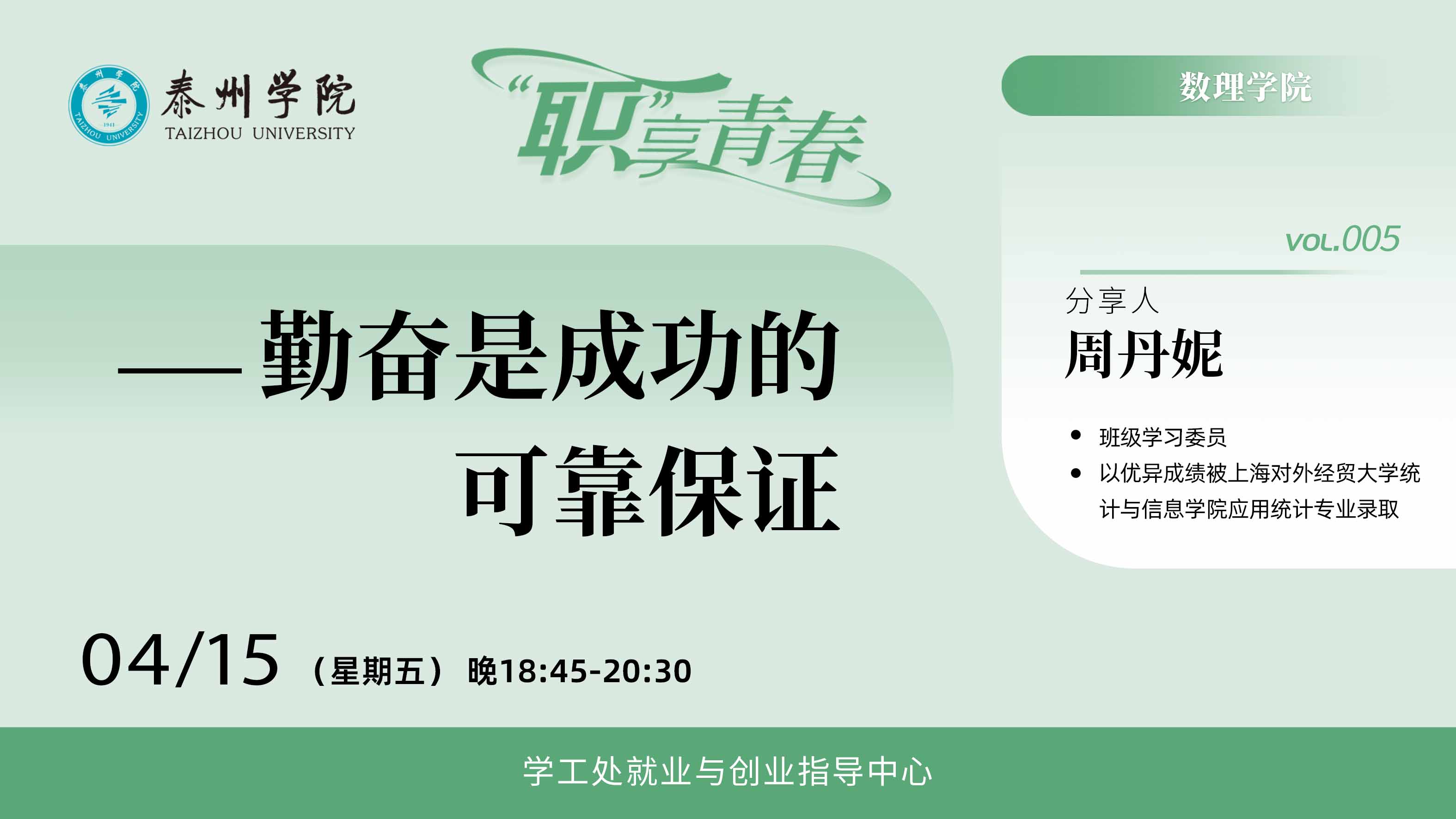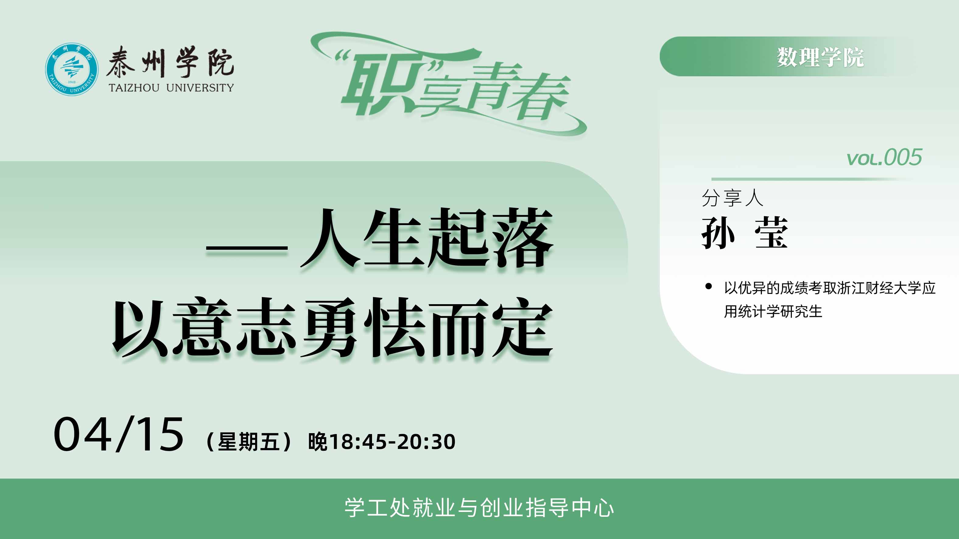 孙莹同学顺利考取浙江财经大学应用统计学研究生,她讲述了报考院校的选择、复习建议以及不同科目复习方法,她特别强调学习规划的重要性,有规划有目标的复习才能提高学习效率。周丹妮考取了上海对外经贸大学统计与信息学院应用统计专业,她分享了自己的择校方向、规划建议及复习备考的心得体会,建议大家进行学习总结,及时补弱,明确努力的方向,朝着既定目标咬紧牙关勇往直前。