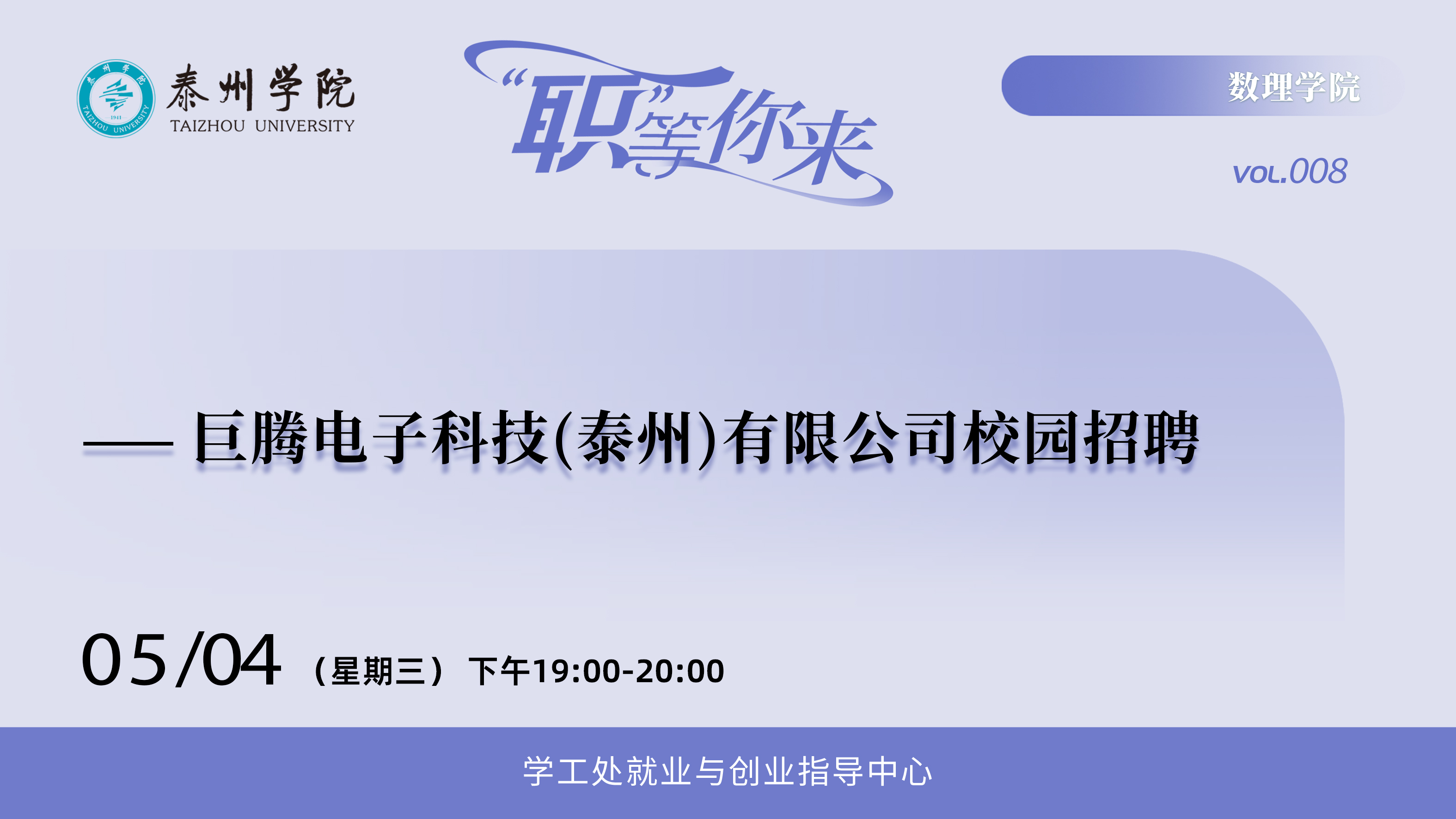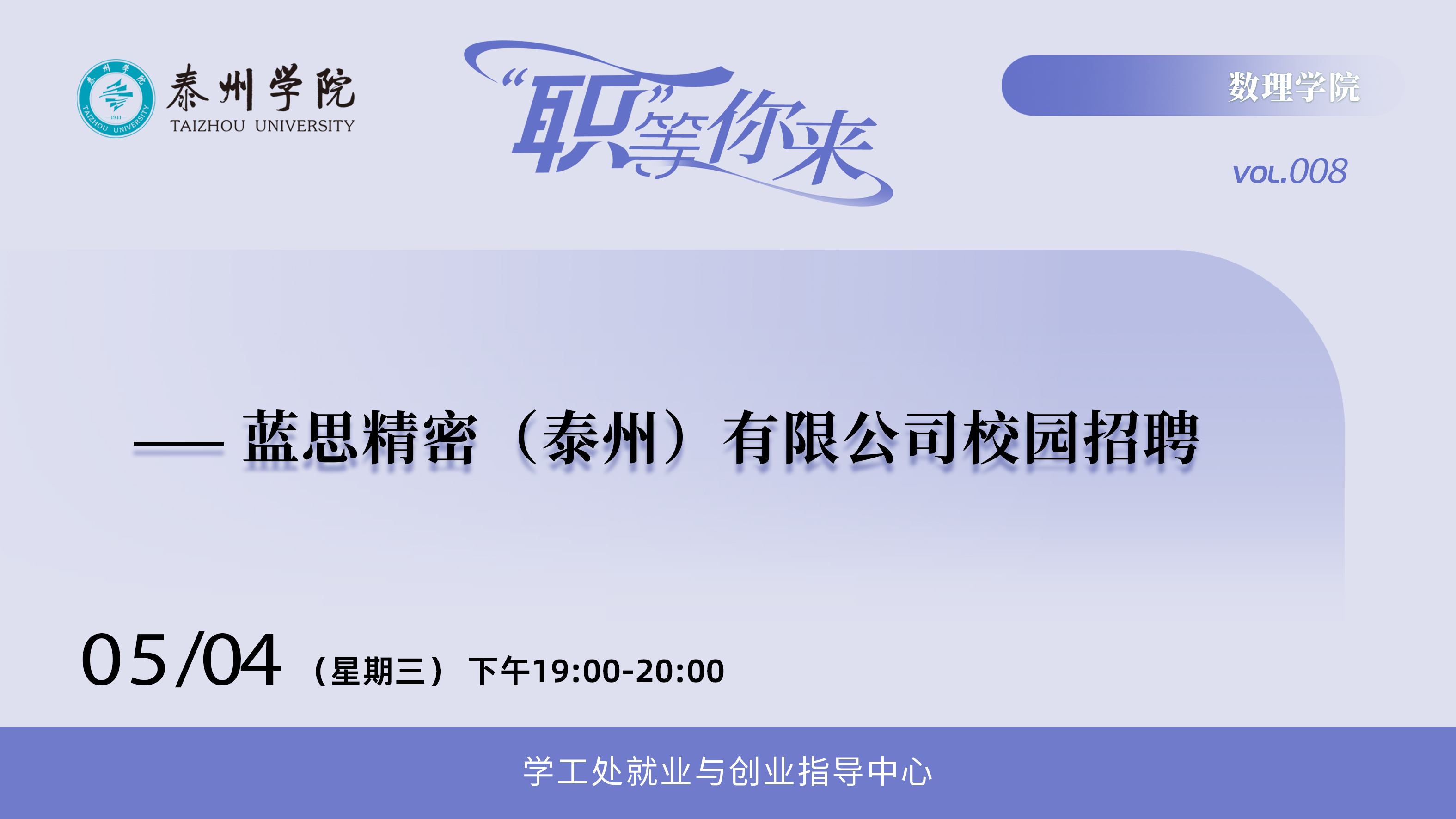 为使员工深入了解企业需求,加强校企联动,推进毕业生落实高质量就业。m88于5月4日晚开展“‘职’等你来”校园招聘宣讲会。蓝思精密(泰州)有限公司和巨腾电子科技(泰州)有限公司受邀参加。
