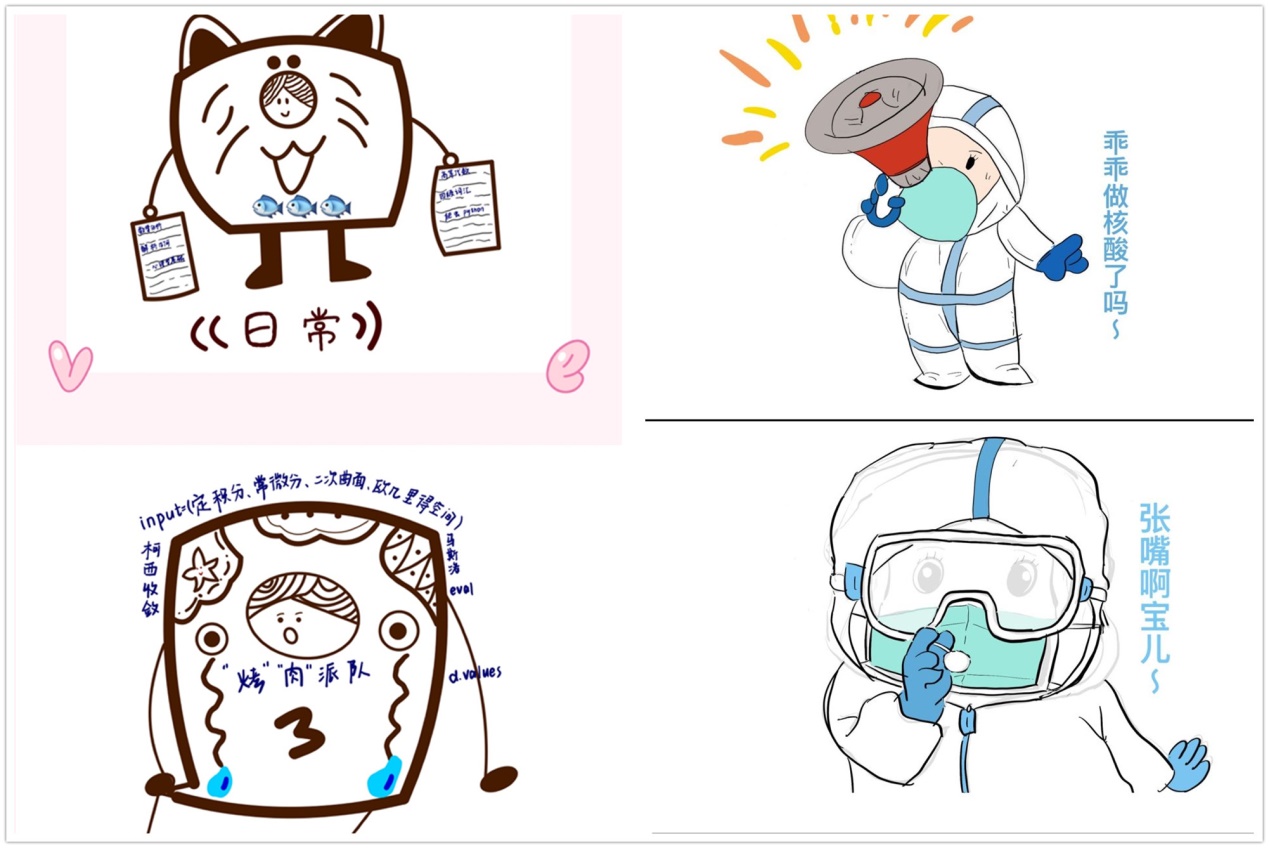 为引导学院同学担当作为,提振抗击疫情信心,彰显正能量,公司以宿舍为单位举办“花样青春,创意无限”表情包设计大赛。风格统一、生动有趣的表情包作品,描绘同学们学习生活、积极抗疫等场景,展示数理学子乐观的心态和创造性思维。