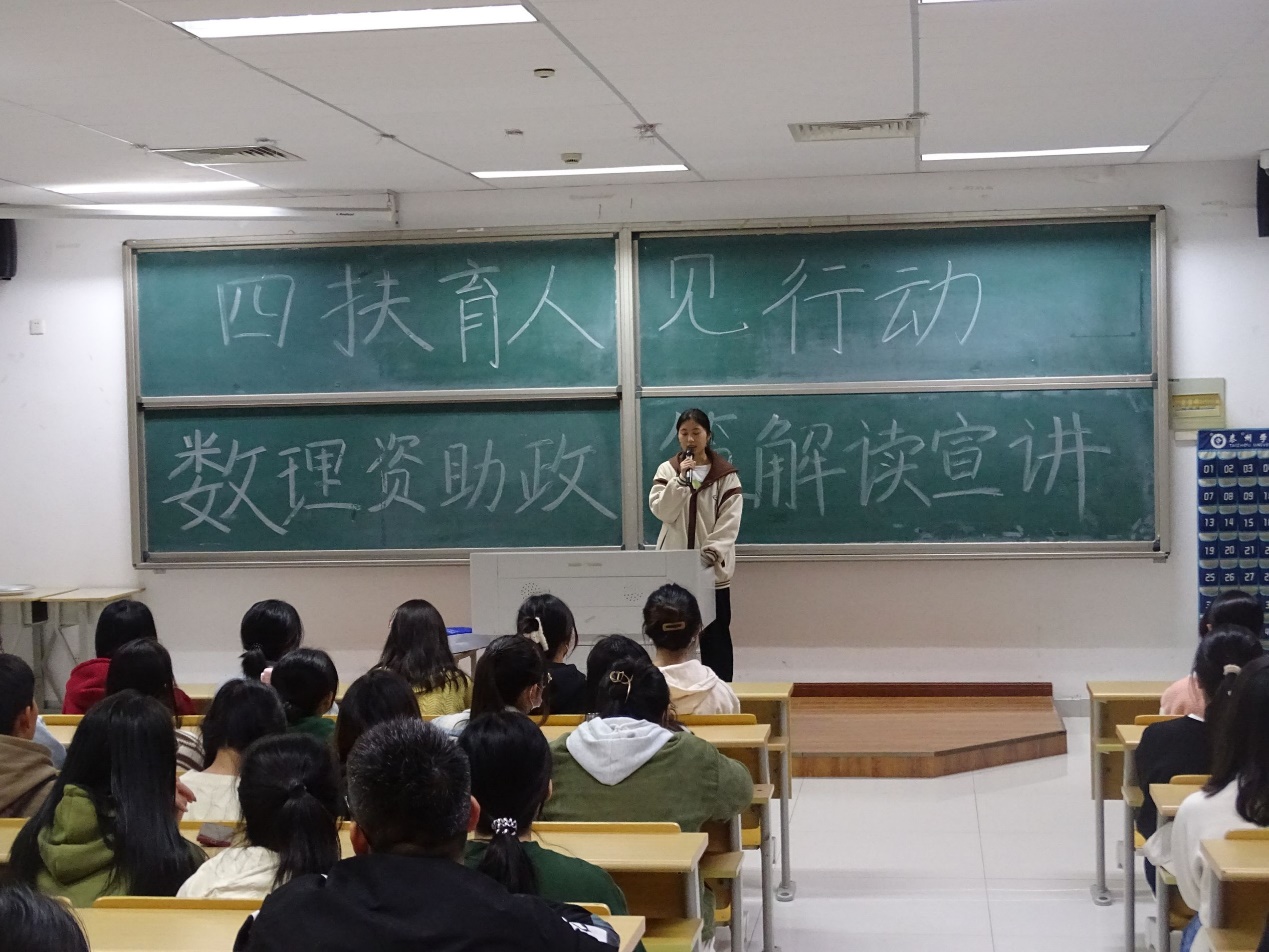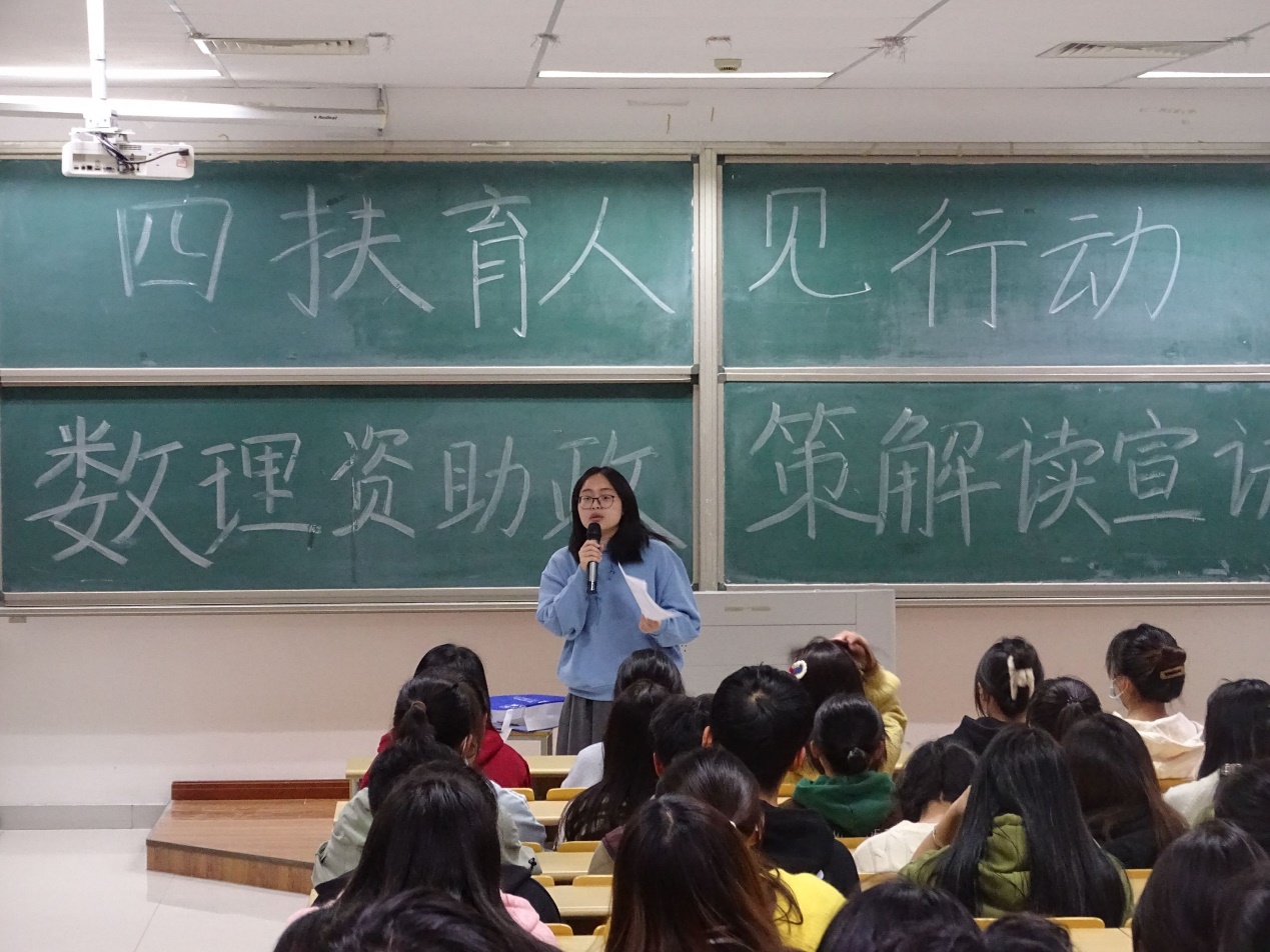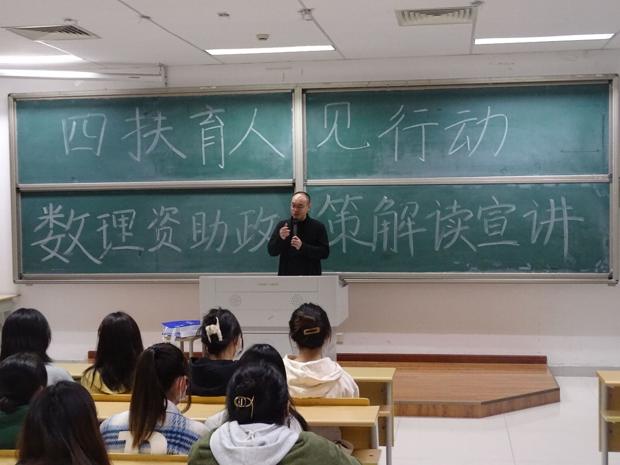 首先赵洁老师详细解读了国家奖学金、国家励志奖学金、国家助学金、学校临时补助以及学费减免等文件要求。随后,院“员工资助政策宣传大使”杨灿同学分享自身学习奋斗经历以及获奖体会。最后,吴小荣老师讲话。他希望大家努力学习,在逆境中成长。要求大家做到:不卑不亢,砥砺奋斗,用优异成绩回馈社会;遵规守纪,树勤俭节约新风尚;乐学助人,做全面发展老员工。