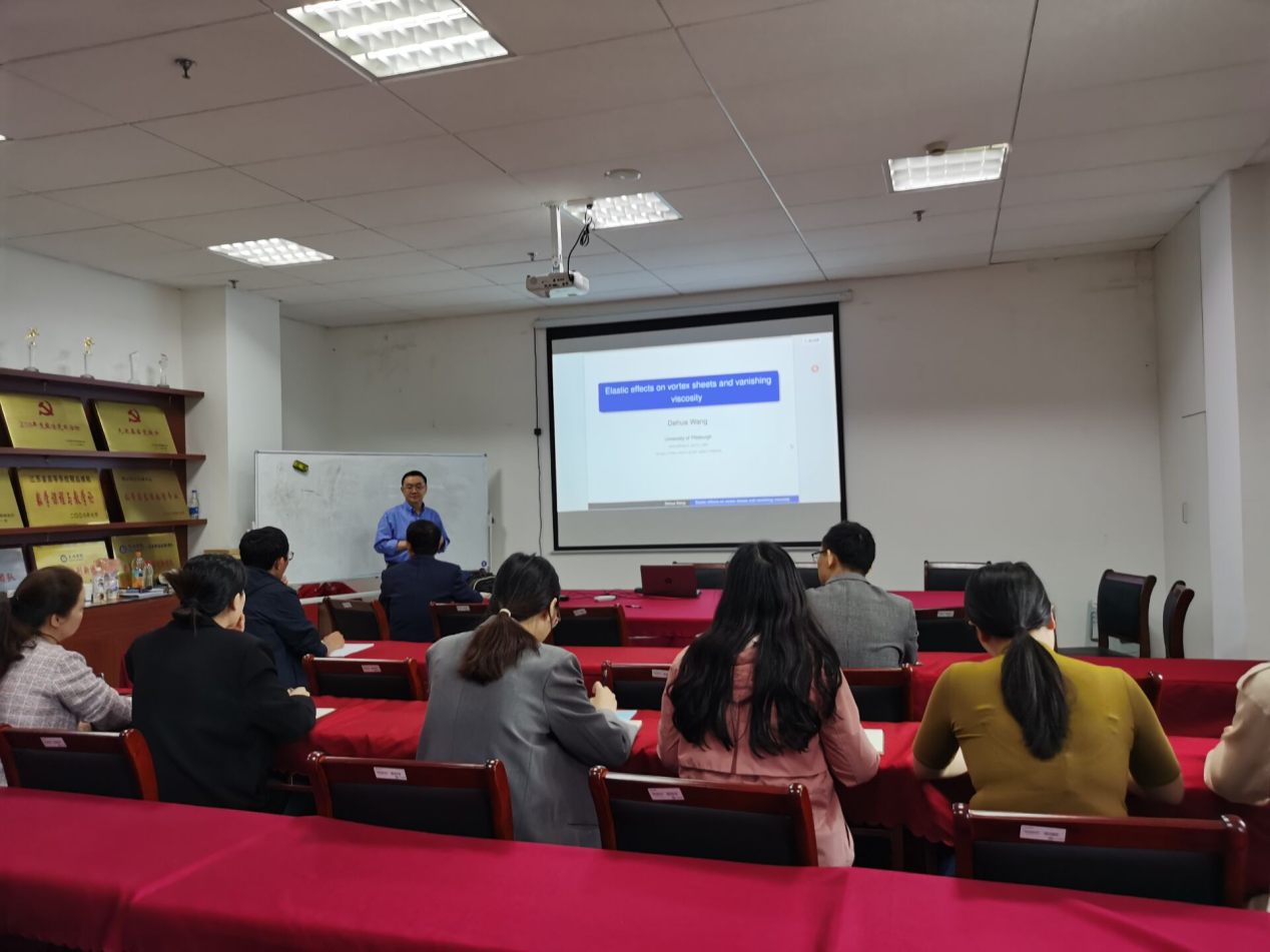 5月6日上午,美国匹兹堡大学王德华教授应邀在m88会议室行政办公楼D1321作了题为“Elastic effects on vortex sheets and vanishing viscosity”的学术报告,报告会由m88副经理王成敏教授主持,学院部分师生参加报告会。