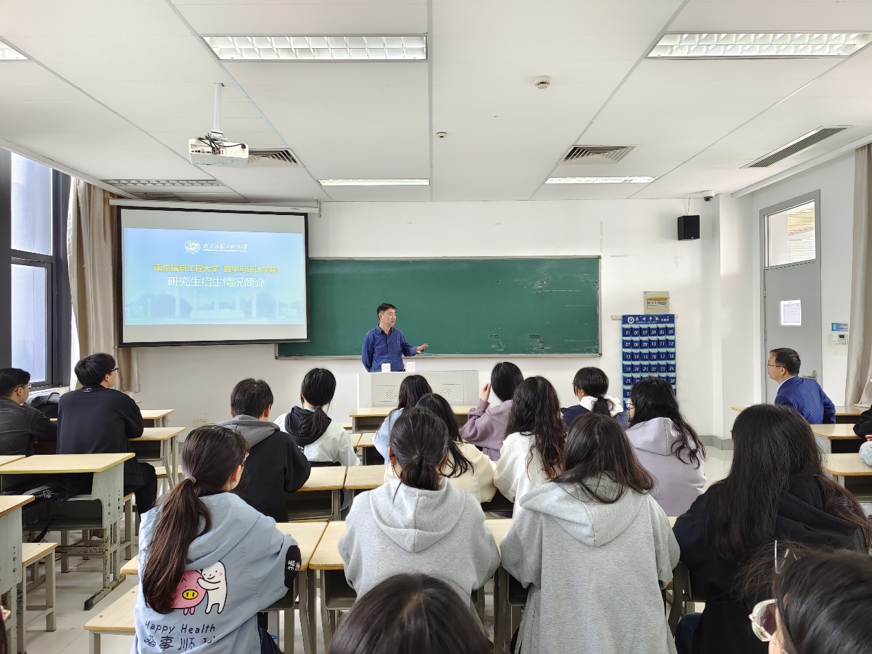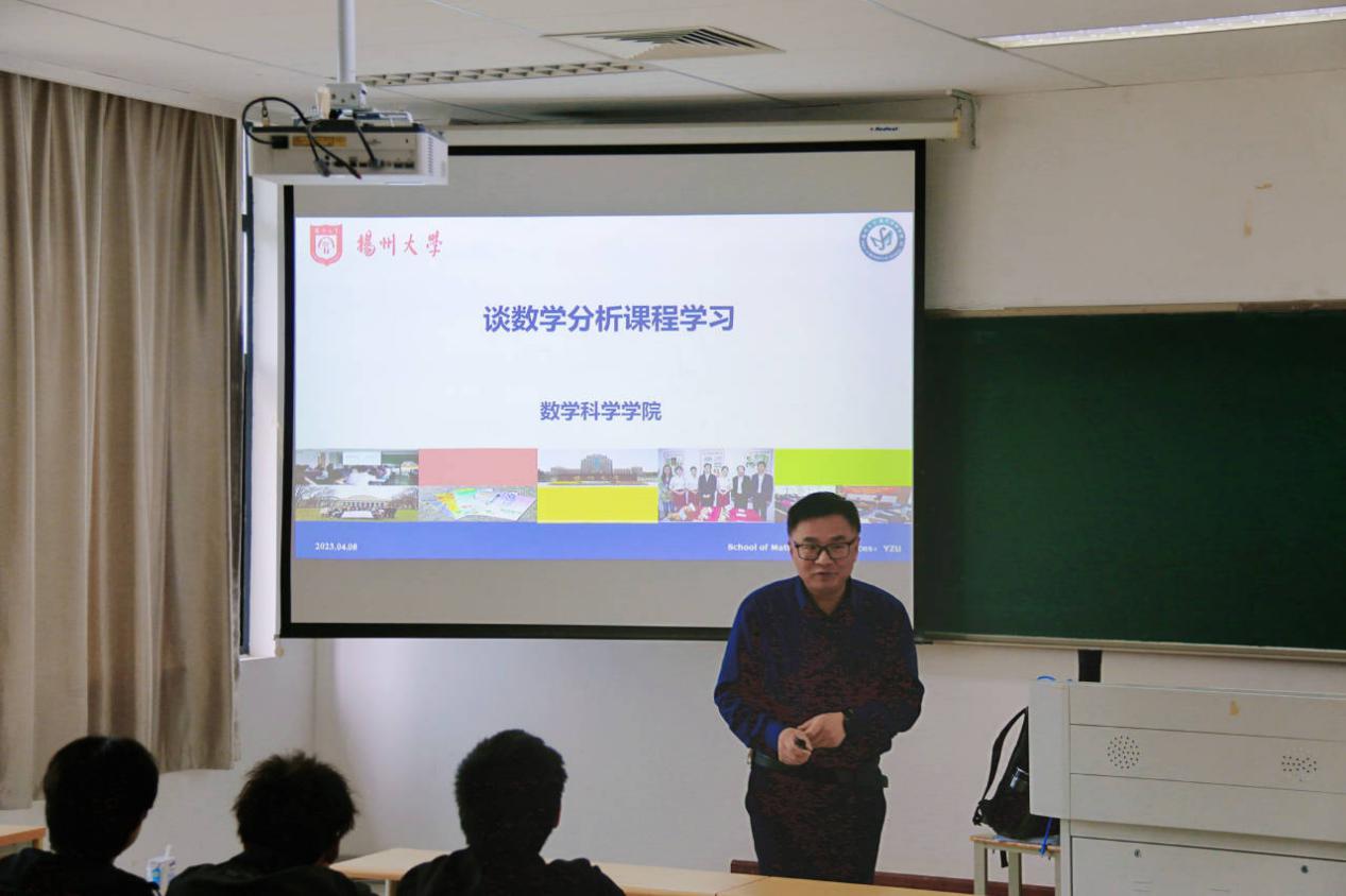 为进一步明确员工考研方向,m88于4月24日、5月12日邀请扬州大学数学科学学院副经理黄强联教授、南京信息工程学数学与统计学院副经理曹春正教授分别为20级数学与应用数学专业和应用统计学专业员工作升学考研报告。