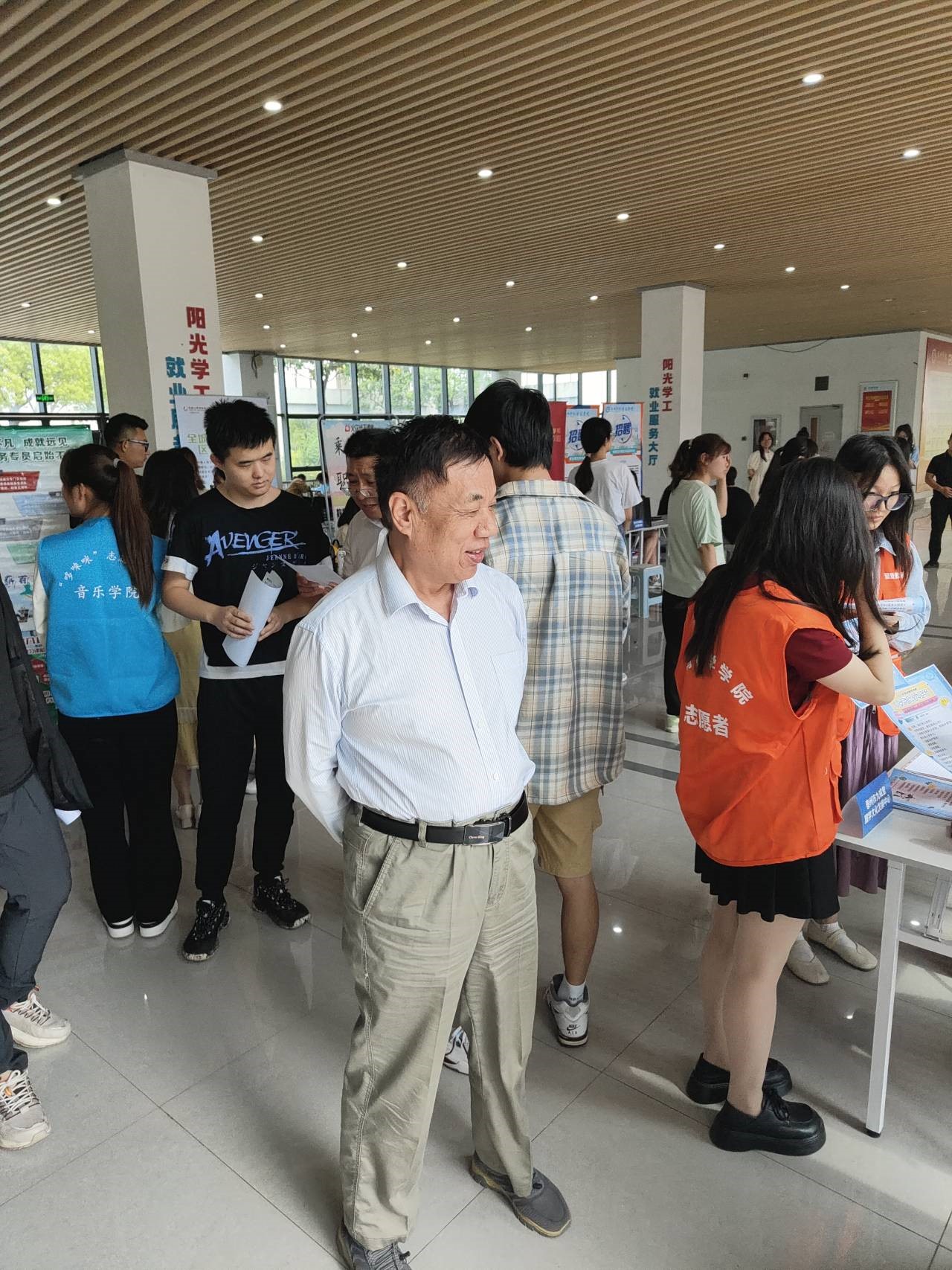 为助力2023届毕业生更充分就业,5月26日下午,公司联合教育科学学院、音乐学院举办“发挥‘五老’作用 护航员工就业”专场招聘会。学院关工委主任吴小荣、副主任王国平以及辅导员深入招聘会现场,助力毕业生顺利就业。