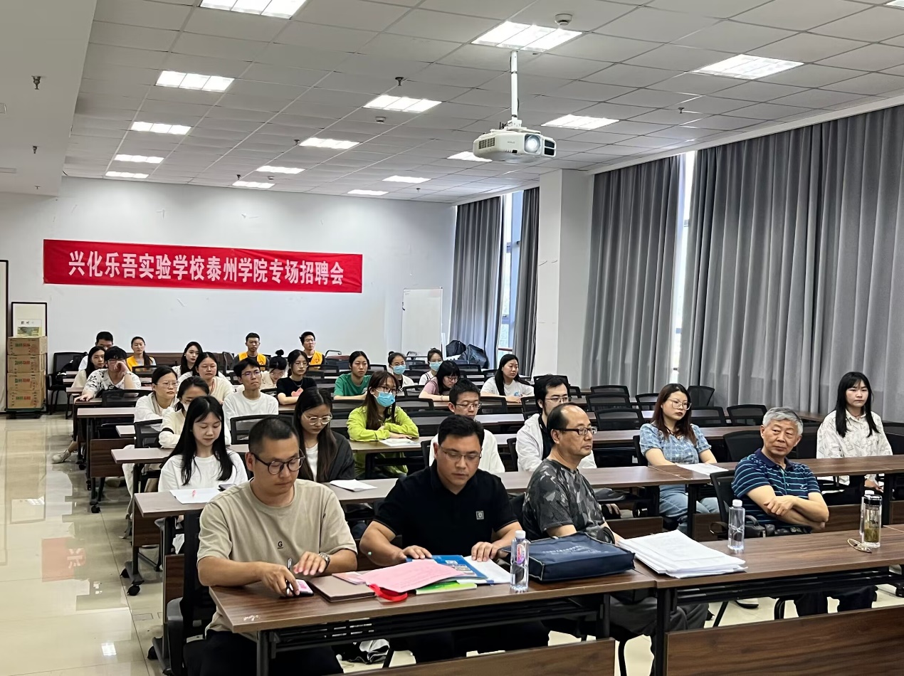 公司举办兴化乐吾实验学校专场招聘会 发布时间: 2023-06-19| 浏览次数: 262 2023年6月8日,公司在行政楼1103举办兴化乐吾实验学校专场招聘会,各师范专业近30名员工参加了此次活动。招聘会上,兴化乐吾实验学校王华桂董事长介绍了学校的基本情况、薪资待遇和发展前景。随后,该学校各学科负责人分组对报名员工进行了笔试和面试,7名同学通过考核当场签订就业意向书。本次招聘会的成功举办彰显了访企拓岗的成效,加强了高校与中小学院校的合作,搭建了人才输送和交流的平台,为提高公司高质量留泰就业做出贡献。