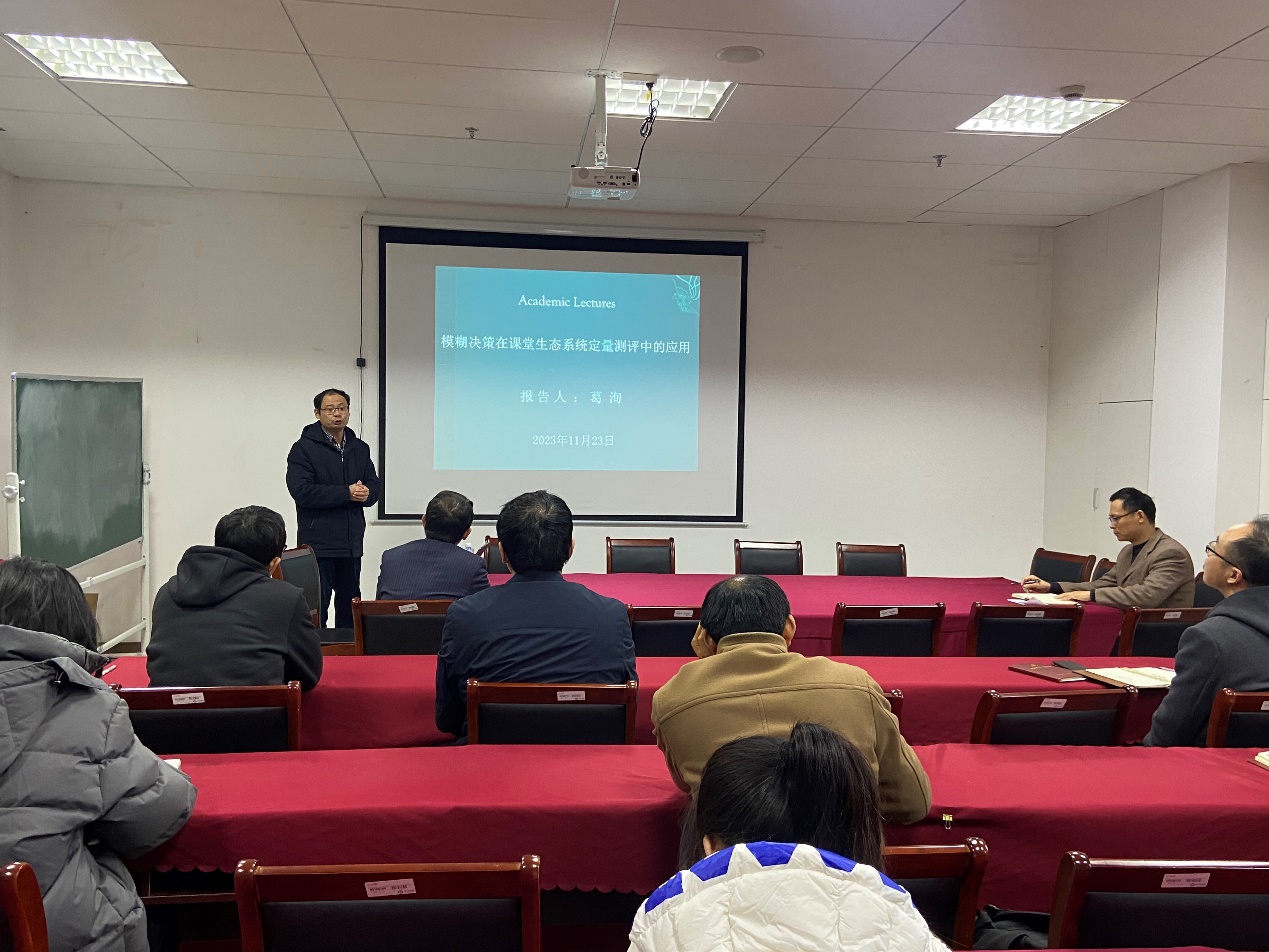 11月23日下午,苏州大学葛洵副教授在行政楼D1321会议室为公司师生做了题为《模糊决策在课堂生态系统定量测评中的应用》的学术报告,报告由王成敏副经理主持。