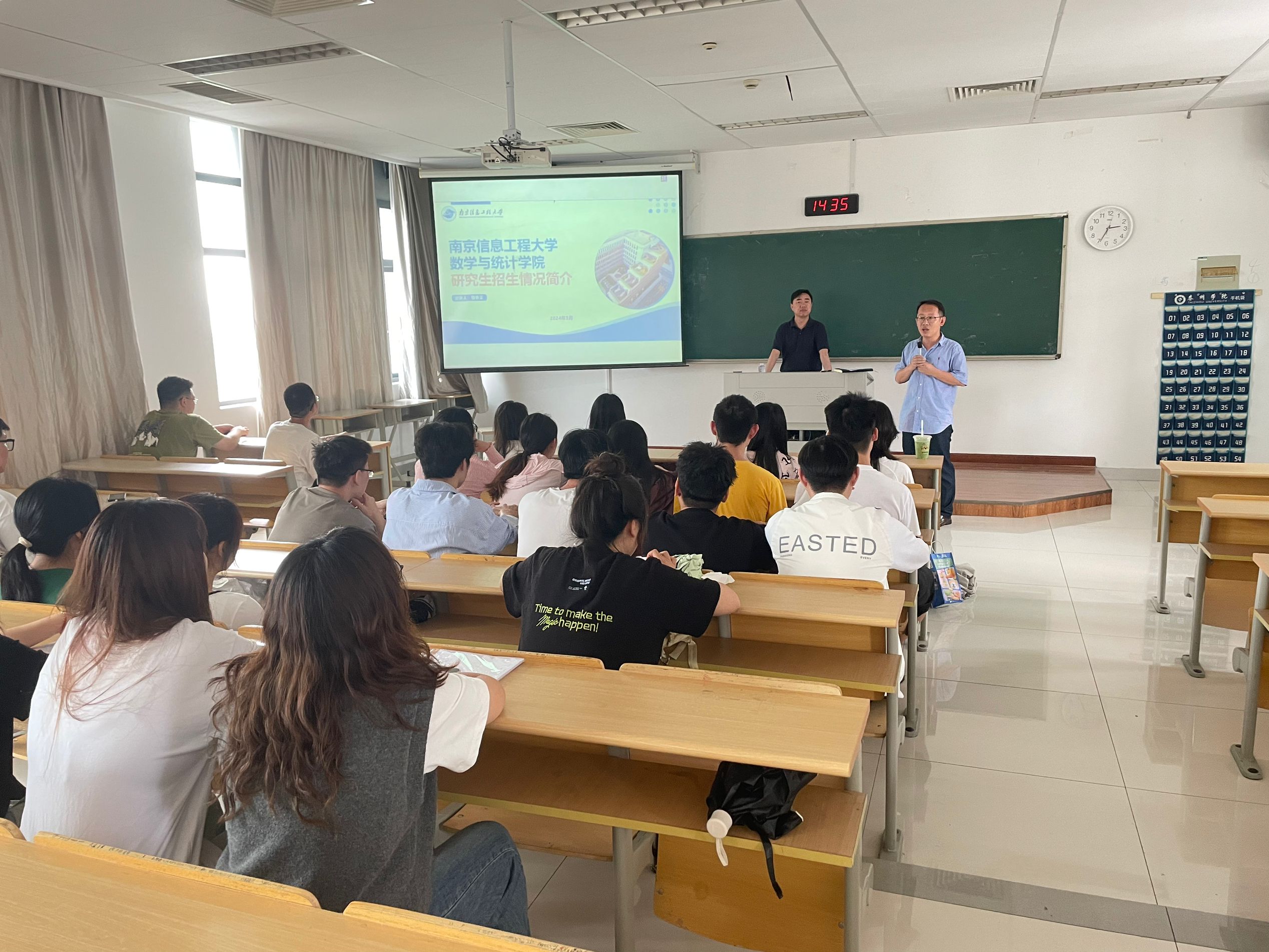 讲座上,曹春正首先阐述了在当前形势下考研的重要性与必要性,对应用统计学专业学子的报考院校与专业选择,以及如何备考提出建议;其次,介绍了南京信息工程大学的整体情况、数学与统计学院学科与专业情况;最后具体阐述应用统计学专硕与学硕的研究方向、培养方式与就业前景等情况。