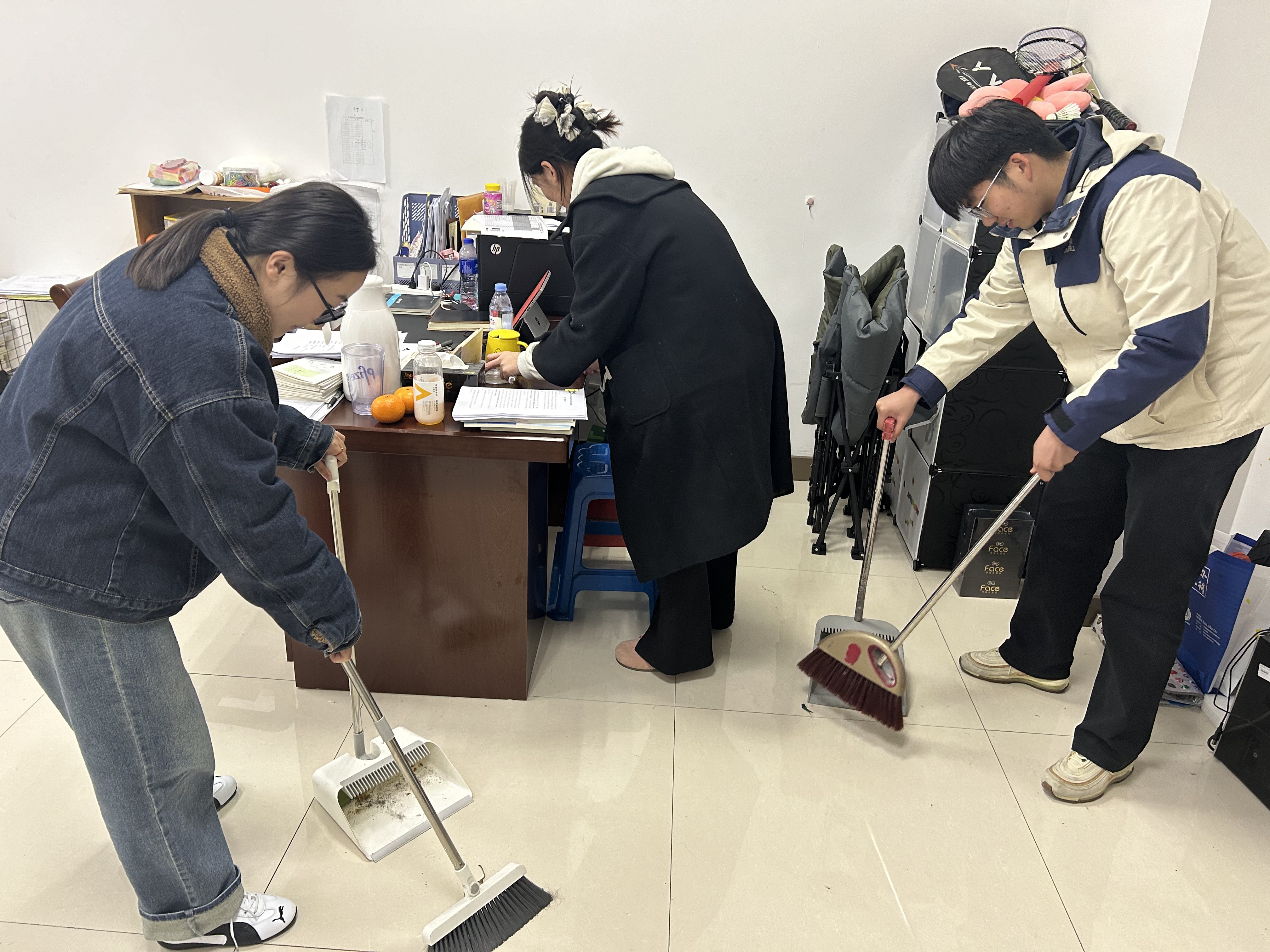 为深入贯彻落实新时代劳动教育理念,引导员工树立“劳动最光荣”的价值观念,3月13日,22级数师1班将劳动教育课堂走进学院办公区,组织全体同学开展“以劳树德、以劳育美”主题实践活动。通过分组承担办公区清洁整理任务,同学们在实践中感悟劳动精神,锤炼劳动技能,为学院师生营造整洁舒适的工作环境。