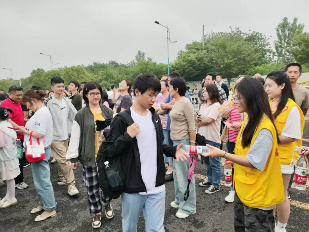 高考期间,志愿者们每天早早抵达站点,贴心准备考试用品、防暑物资和饮用水等,以备考生和家长的不时之需。看到有需要的考生和家长时,他们主动上前递水,为其消解暑热。此外,志愿者们还热情地为考生指引道路、维护秩序,用温暖的笑容和鼓励的话语为考生们加油打气,让考生们在紧张的考试氛围中感受到社会的关爱与支持。