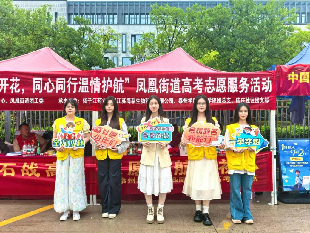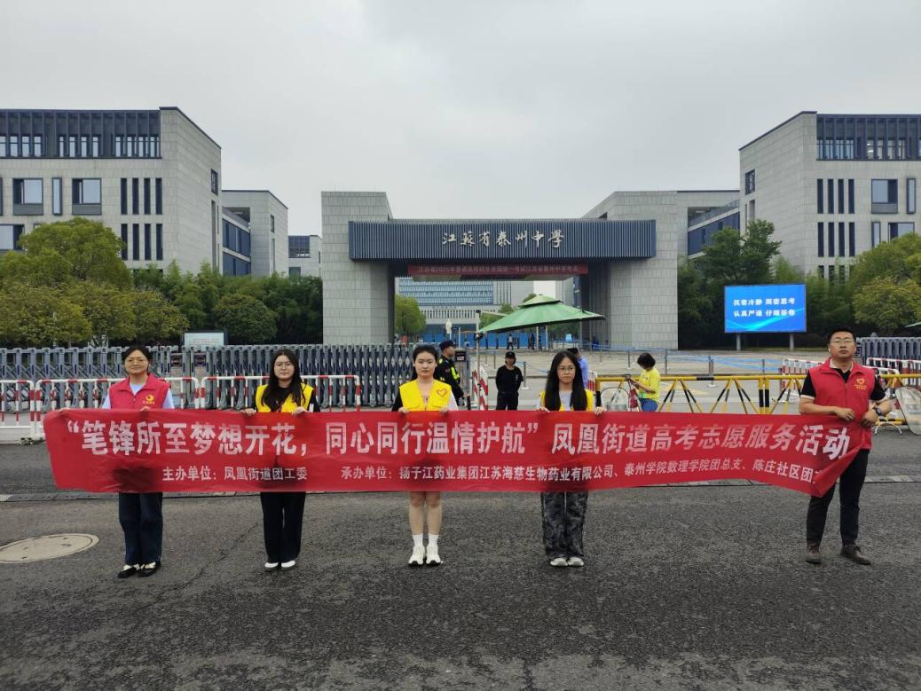 为弘扬奉献、友爱的志愿服务精神,助力高考顺利进行,6月7日至9日,公司联合凤凰街道团工委在江苏省泰州中学考点外开展“墨香浸染青云梦,众志相携暖考程”高考志愿服务活动。
