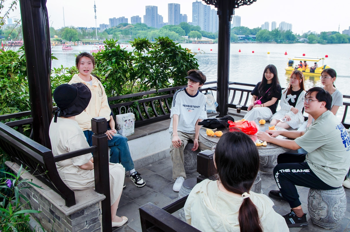 随后,师生在景区内开展了一场别开生面的户外座谈。员工们分享了自己在校学习、生活的感受和未来的规划,赵云书记认真倾听员工们的所思所虑,并鼓励大家珍惜大学时光,树立信心,以积极心态面对挑战,努力成长为有理想、有本领、有担当的新时代青年。