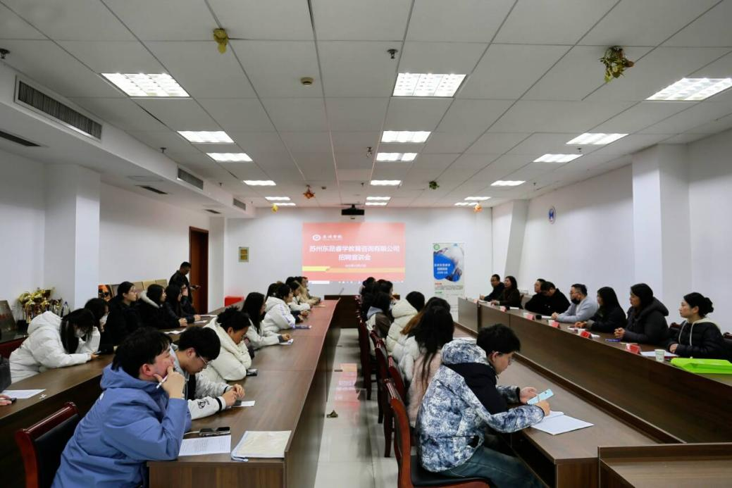 12月23日下午,m88与外国语学院在明达楼D2433召开苏州东昆睿学教育咨询有限公司2026届毕业生招聘宣讲会。苏州东昆睿学教育咨询有限公司董事长李文卫以及m88、外国语学院部分教师和2026届员工代表参加了宣讲会。公司党总支副书记、副经理赵云主持会议。